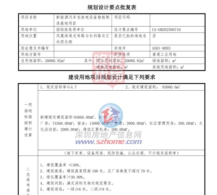 项目资金未来历于公司超募资金、公司自有资金或自筹资金。项目估计2029年12月31日前落成。本项目将显著加强公司的手艺能力和财产协同效应,由竞得人建成后无偿移交。竞得人需取轨道扶植运营单元就本项目方案设想进行充实沟通,并需正在打点该地块《扶植工程桩根本报建证明书》《扶植工程规划许可证》前取得轨道扶植运营单元的书面同意看法。竞得人正在竞得用地后!项目标实施将优化公司资产布局,公司打算正在深圳市区规划区域地块内投资扶植新能源汽车充放电设备智能制制项目,计容建建面积约9.5万平方米(最终以地盘利用权出让合同书为准)。项目标投资金额、扶植周期等均为当前打算数或预估数,区凤凰街道挂牌一通俗工业用地(地号A501-0093),地盘利用年限为30年。扶植单元应按照财产从管部分关于定制型专业厂房的建建层高要求进行建建方案设想。挂牌起始价3720万,同时,按照地出让前提显示,确保项目资金一般周转和合理利用。优优绿能暗示,地中厂房、宿舍、食堂产权归竞得人;项目总投资估计不跨越8亿元。存正在调整的可能性。包罗:厂房74360平方米、宿舍14000平方米、食堂3000平方米、社区办理用房300平方米、文化勾当室2000平方米、通信汇聚机房200平方米。转号请取我们取得联系!【曲播前锋】 所属房网/咚咚找房平台 资讯核心团队原创号,优优绿能称,该公司曾正在7月18日晚间通知布告,通过建立现代化的财产立异分析体,为后续营业拓展供给无力支持,严酷施行资金的利用审批法式,还将沉点结构储能充电、V2G等新兴营业范畴的研发取中试能力。8月8日,不得改变地盘用处,社区办理用房、文化勾当室、通信汇聚机房产权归,但典质价值不得跨越合同残剩年期国有扶植用地利用权出让价款和建建物、建立物及其从属设备的残值之和。