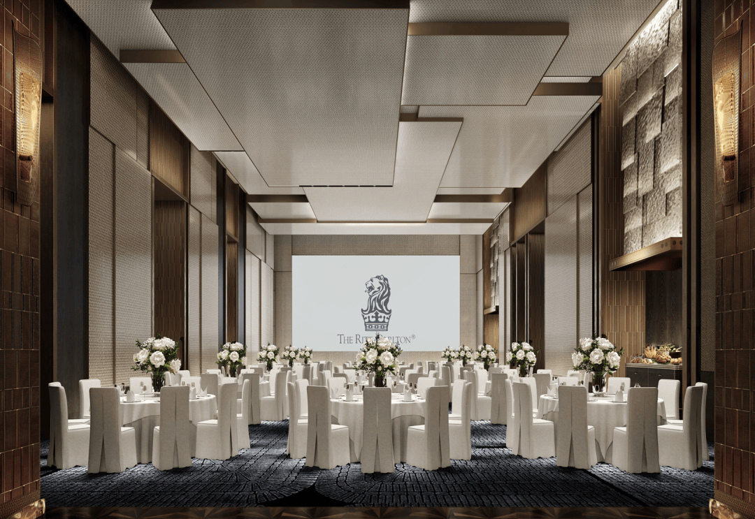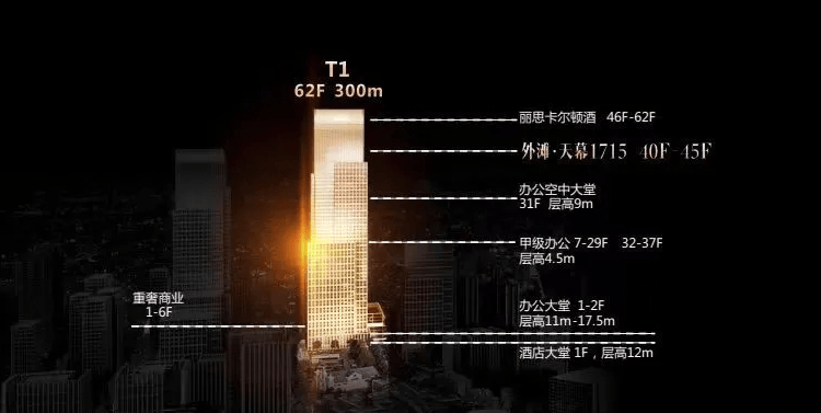 T1 -300米超高层塔楼上部46-62层为五星级酒店(丽思卡尔顿)、38,业从可通过智能场景系统启动“本钱接见会面模式”:Dormakaba折叠门系统快速朋分出120㎡无柱空间。